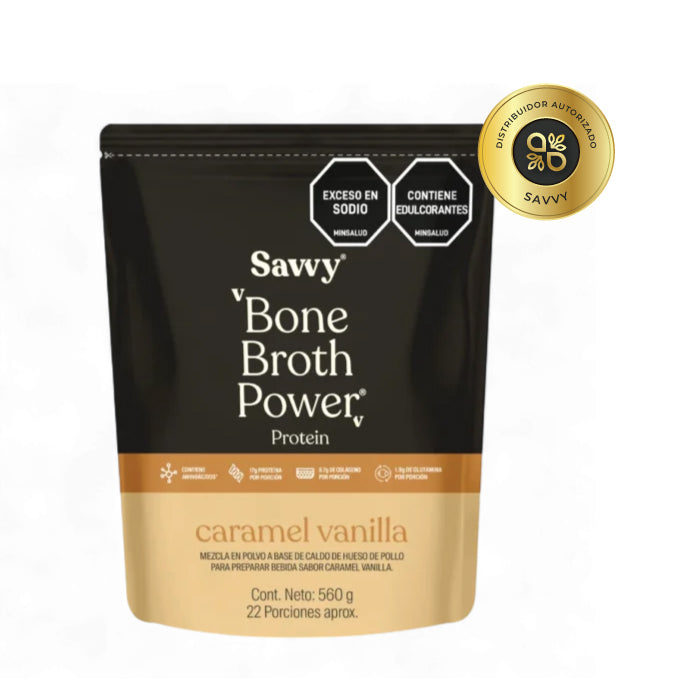 Proteína Bone Broth Power Caramel Vanilla Savvy 560 gr